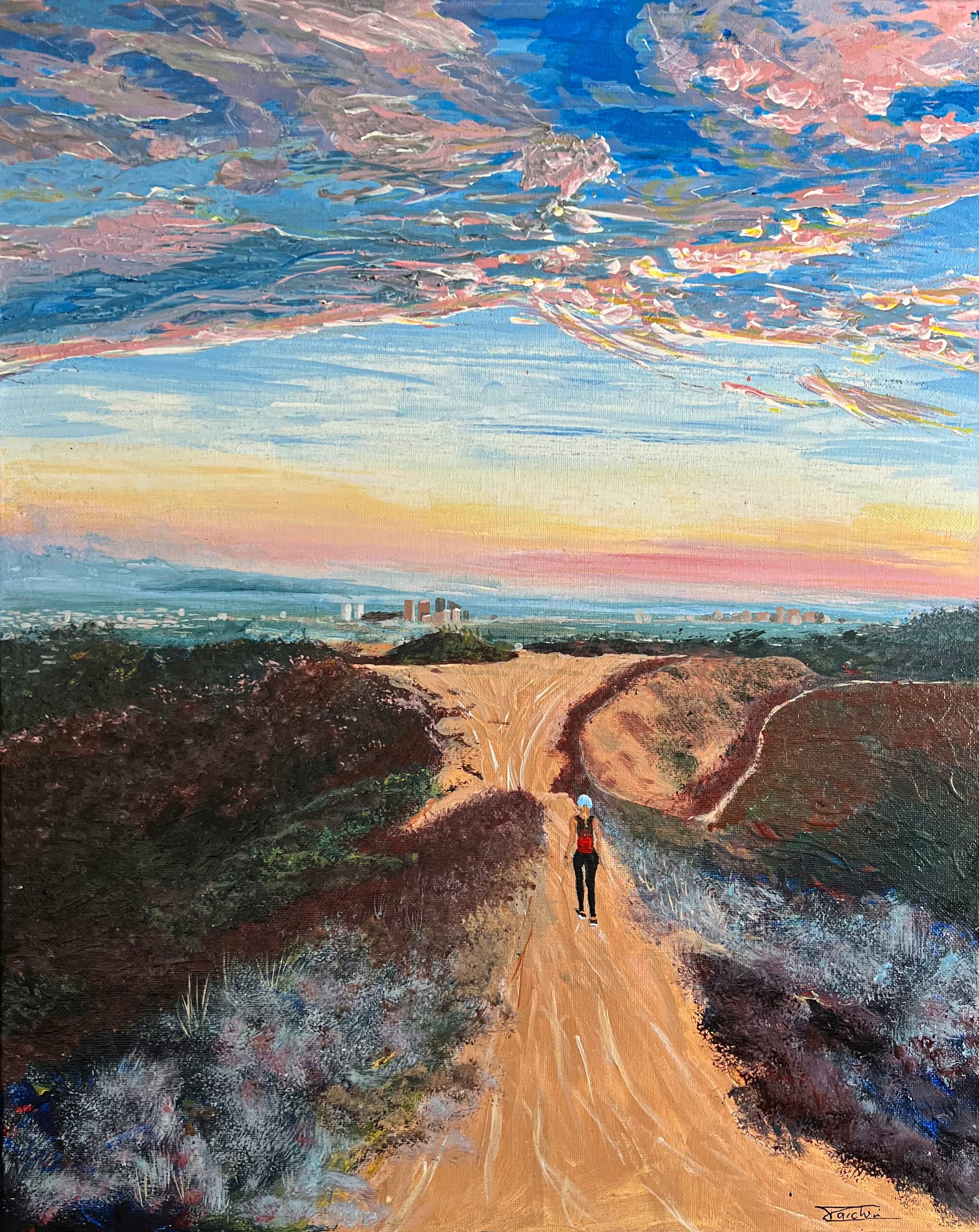 I started this painting after a breakup, inspired by the golden light on my favorite trail in LA: Hastrain, in Franklin Canyon. It took me three years to finish. Layer by layer, it became my way of letting go.