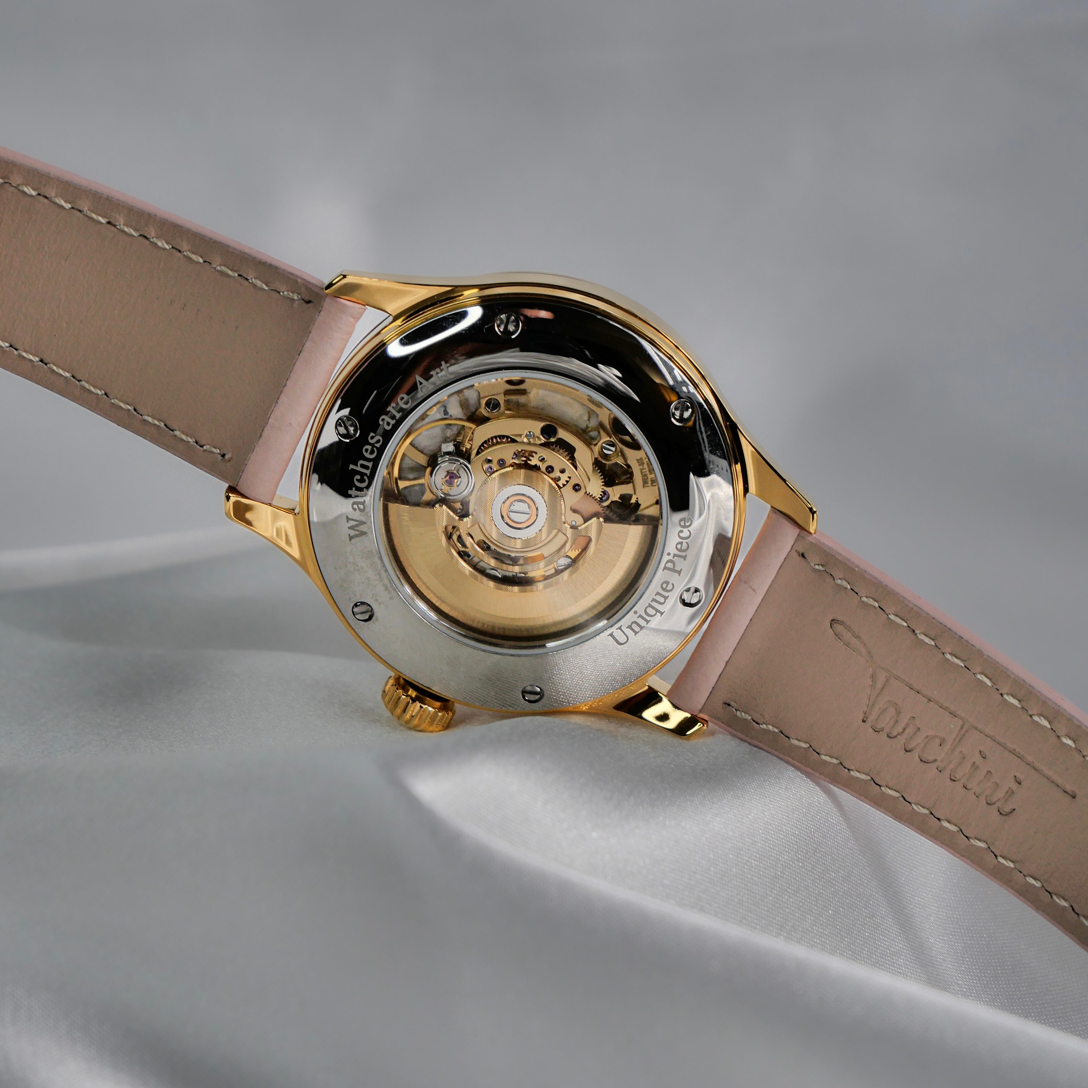 Experience the epitome of luxury and craftsmanship with Carrara. Powered by a Swiss mechanical & automatic movement, this timepiece is the perfect blend of precision and elegance. Each watch features a hand-painted dial, meticulously craftet by myself, a Swiss watchmaker and the founder of Tarchini, ensuring that every piece is a unique work of Art. The dial is painted on both sides, allowing you to admire the artwork from the back of the watch through the openings of the skeletonized movement.