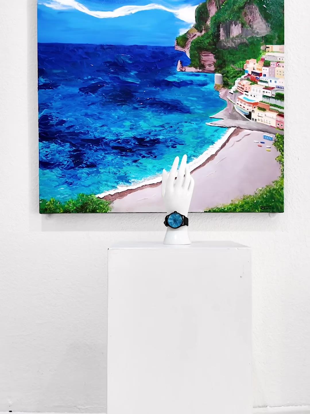 Every canvas I make is painted by hand in my Los Angeles studio, with textured layers, movement, and color shifts that mirror the details of the matching watch dial. It’s a visual story told in two forms: one to wear, one to hang.